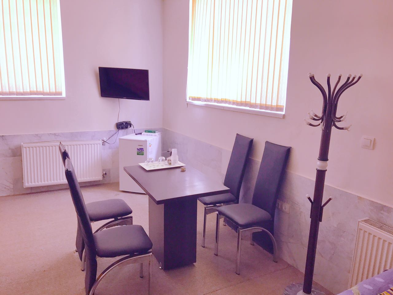 سوئیت شامل:تخت،یخچال،تلویزیون،سرویس حمام و دستشویی،میز غذا خوری